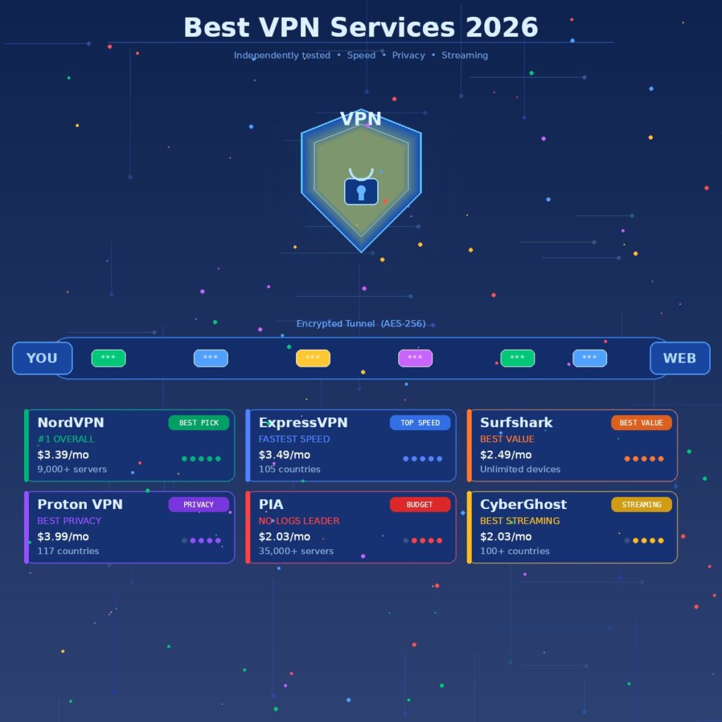 So let’s cut through it. Based on independent testing data from March 2026, covering speed benchmarks, streaming reliability, privacy audits, and real-world usability, here are the VPNs that actually earn their place on the list.